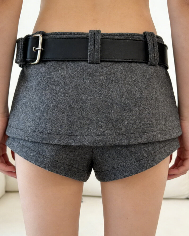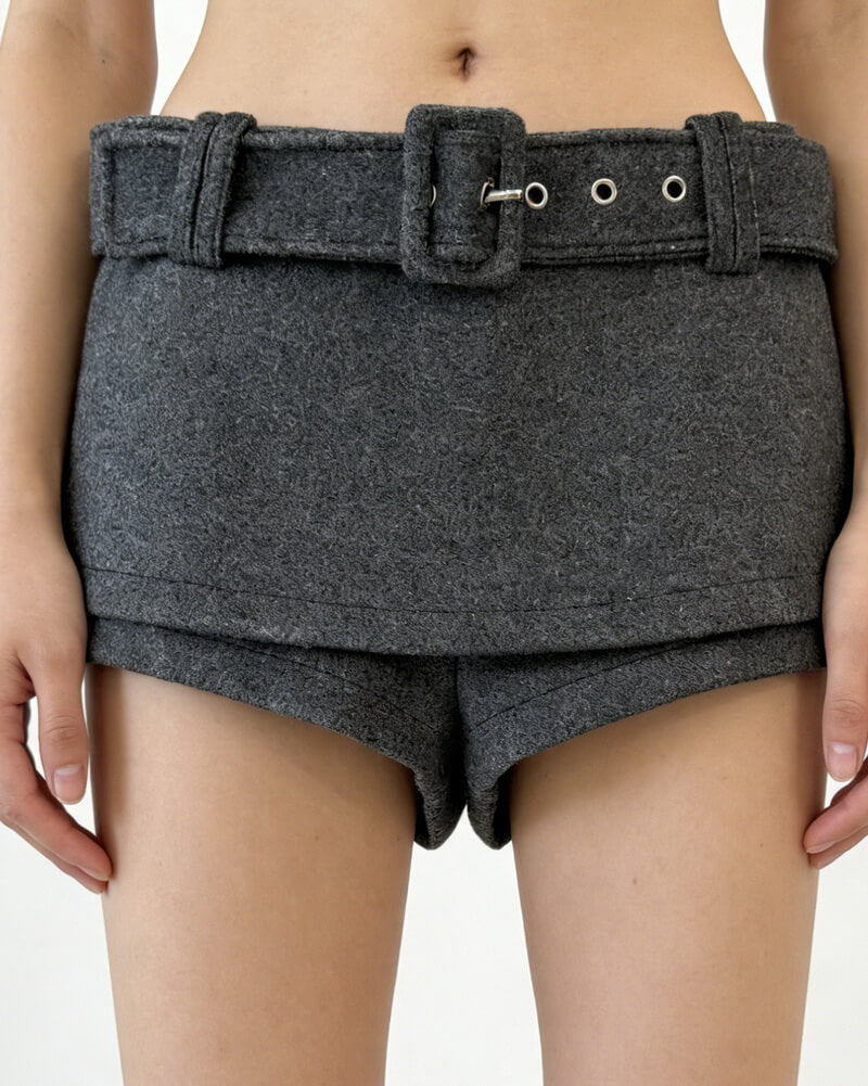 NURO Women's Wool Blend High Waist Short Culottes - Flowy Wide Leg Paperbag Shorts with Belt, Winter Casual Pant Skirt