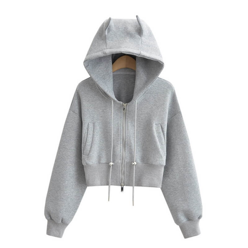 NURO Zip-Up Hooded Jacket for Women - Cropped Long Sleeve Casual Streetwear